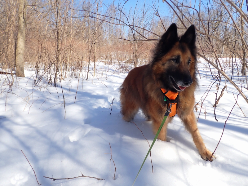 It could be that she got enough of a workout from the deep snow to appreciate the number of times I asked her to pause and wait while I took some pictures. There were fabulous shadows on display that I found particularly captivating, despite my being unable to successfully record most of them.