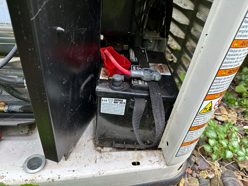 Our backup generator hasn’t been coming on as part of its weekly self-test lately and I finally remembered to look into why that is. Since I so rarely interact with the machine, working on it becomes a bit of a guessing game. Luckily, there was an obvious red LED indicating a problem. Stepping through the menu I found a note indicating there was a problem with the battery.