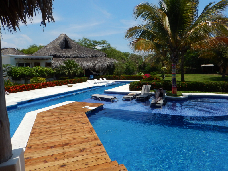 We jumped in the pool after soccer and eventually Cyndie, Marco, & Dunia joined us for a relaxing soak until dusk threatened an onslaught of mosquitos. After a shower, I climbed the new spiral stairs to their TV room to play some cards with the boys before calling it a day. While we were up there, it started to lightning outside and we heard a few good rumbles of thunder. When I came down, I stepped out from under the roof to check the weather and enjoy some of the lightning activity. Bill had stepped out from next door to look, as well, and he described the usual storm activity. If it comes from the ocean, as this one appeared to be doing, it is usually a pretty good storm.