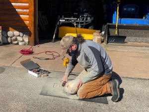• It is really nice to be able to work outdoors when sanding wood sculptures.