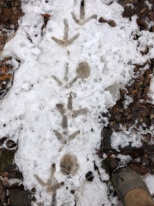 I think my temperature probably went up a little bit yesterday afternoon on my walk through the woods with Delilah. Apparently, there might be an ostrich loose in the area. If those were turkey footprints in the snow, that beast must be bigger than Ms. D.