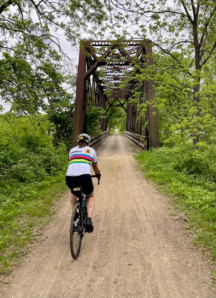 The exclusive dose of gravel railroad bed trails took a toll on our minds and bodies, so if I were to do it again, I might look to add a change of pace with some miles on a few country roads. The trails plum wore us out each day. On the bright side, though, the effort should serve us well in preparation for the Tour coming up in just two weeks.
