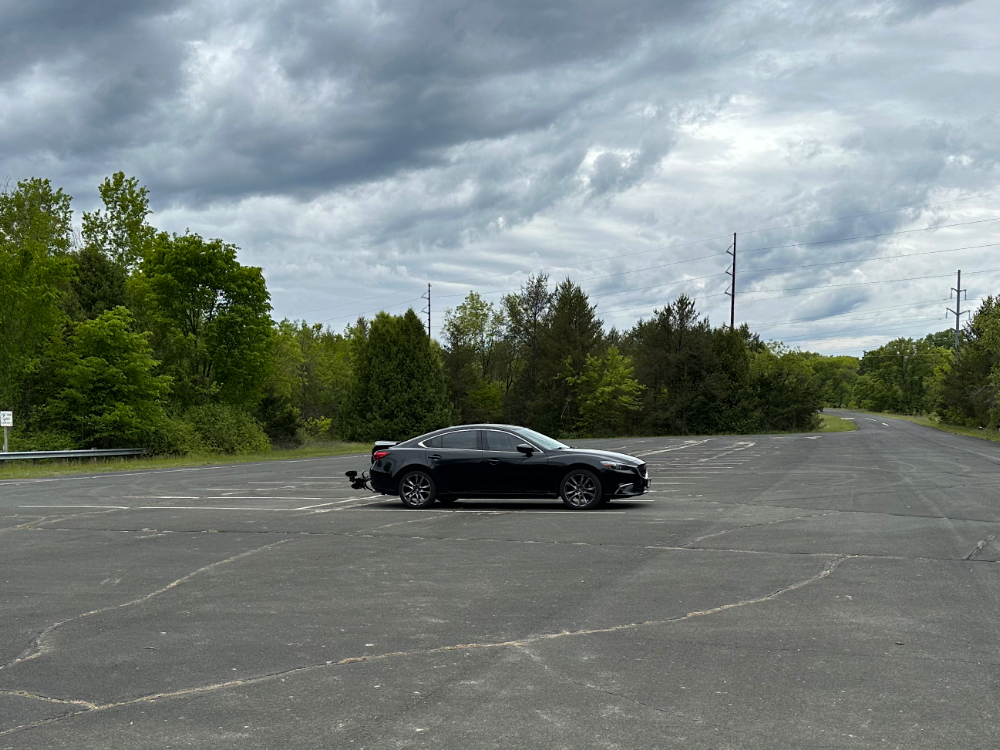 We were also the only ones in the campground in Elroy (the one with the impossibly steep hill) on our first night there. Thursday night, one other campsite got claimed. After the first night sleeping in Elroy, we figured out ways to avoid making any extra trips up that incline. We left a lot of stuff in the car parked across the road so we could shower at the trailhead after riding and before heading out for dinner without climbing back up to our tents.