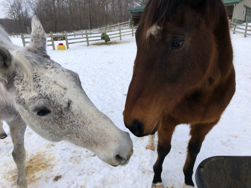 2. Which horse puts her nostril up to my face to breathe my scent almost every time we meet?