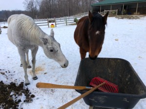 It’s always a good feeling when the barn is freshly stocked with bales of hay and bags of feed. That positive energy is picked up by the horses and they were in a wonderfully pleasant mood yesterday morning during feeding.