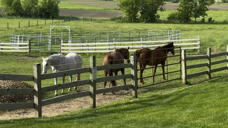 4. Which horse always stays dry under the overhang when it rains or snows?