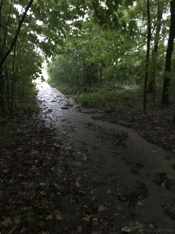 Cyndie dashed back in the house just before the full force of the deluge began to pound down. We received about an inch and a half of rain in roughly an hour’s time.