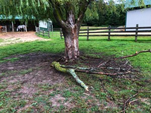 There was a significant number of willow branches both under the tree and scattered across the driveway.