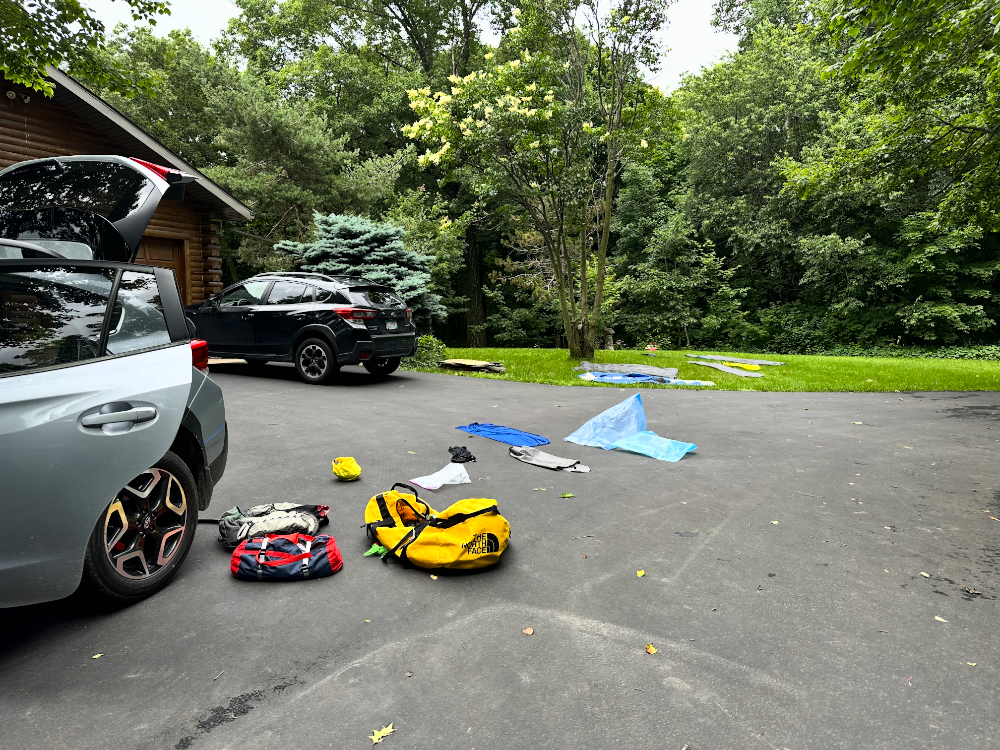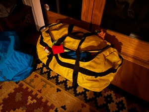 Usually, I end up figuring out a system by the 3rd or 4th day, but by the end of the week, I’ve started tossing things anywhere and everywhere, and my duffel bag becomes a big mess. The amount of chaos in my bag is often related to how rainy the week has been.