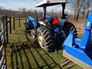 We are wet today, but before the precipitation arrived yesterday, I had a chance to dig the back-blade out of the depths of the shop garage and play around in scraping the paddocks. The blade was parked all the way in the back of the garage because I haven’t used it since the first couple of years here to clear snow.