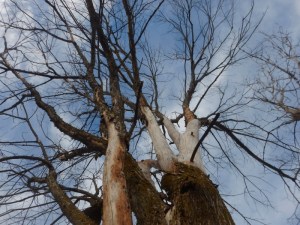 We took a little break for lunch and then when I came out for a few more rounds of battle, it was T-shirt weather. It is just plain sad to be living through the end of cold and snowy winters like the ones I enjoyed as a kid. I fear for the precious trees I have been focused on caring for these last few days, as they react to the warmth and prepare to sprout new buds.