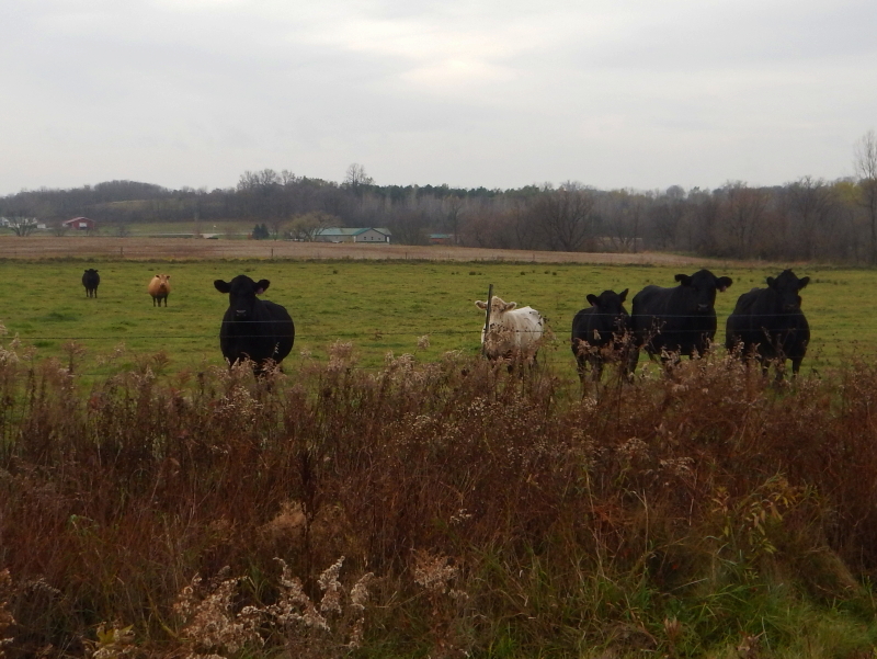 The cows came running up to the fence around their pasture and stared at us expectantly. I think maybe that leaning post was bugging them, too.