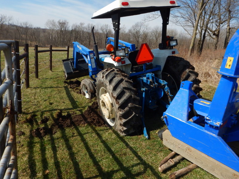 Ultimately, Cyndie and I outsmarted the soft soil with precisely placed scraps of wood fence posts behind the tires while I manipulated the loader bucket to push the tractor backwards.