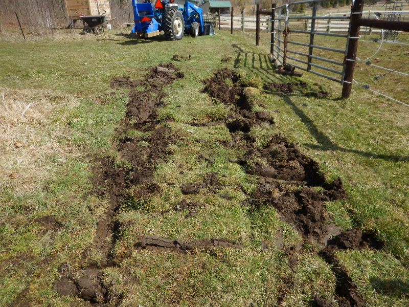 We are wet today, but before the precipitation arrived yesterday, I had a chance to dig the back-blade out of the depths of the shop garage and play around in scraping the paddocks. The blade was parked all the way in the back of the garage because I haven’t used it since the first couple of years here to clear snow.