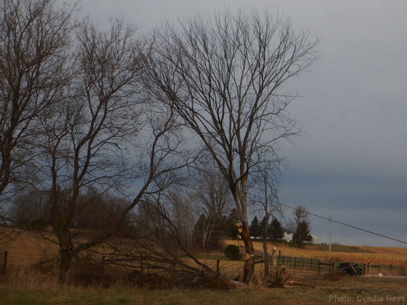 We got two-for-one, as it grabbed a wayward branch of the scrubby box elder tree next to it and snapped that as well.