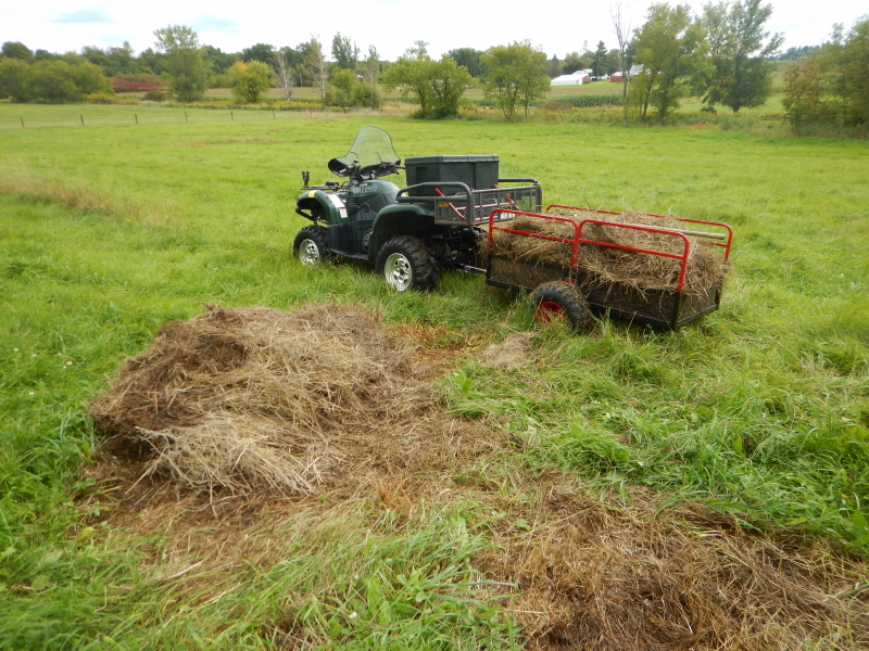 Boy am I ever glad to have a trailer for the ATV again. This weekend I put it to good use hauling logs out of the woods and cleaning up failed attempts at round bales in our fields.