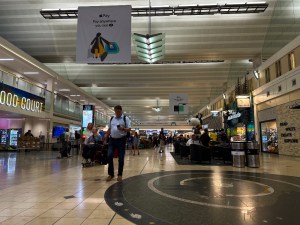 After driving around the parking ramp at the airport for much longer than we hoped, looking for an open spot that we could fit the car into, we got our bags checked and headed for the security line.