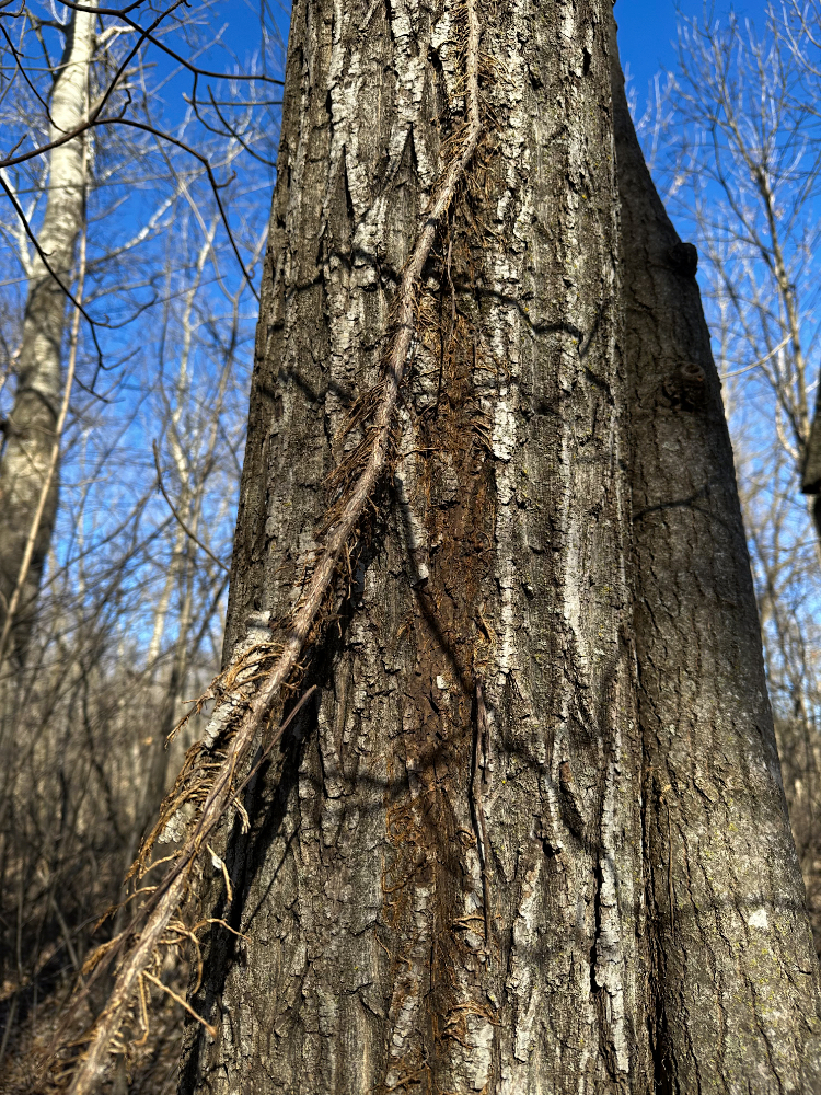 Out of curiosity, I did some image searches for similar-looking vines on tree trunks, and to my surprise, the most common and repeated match identified it as poison ivy. Oops. Really?