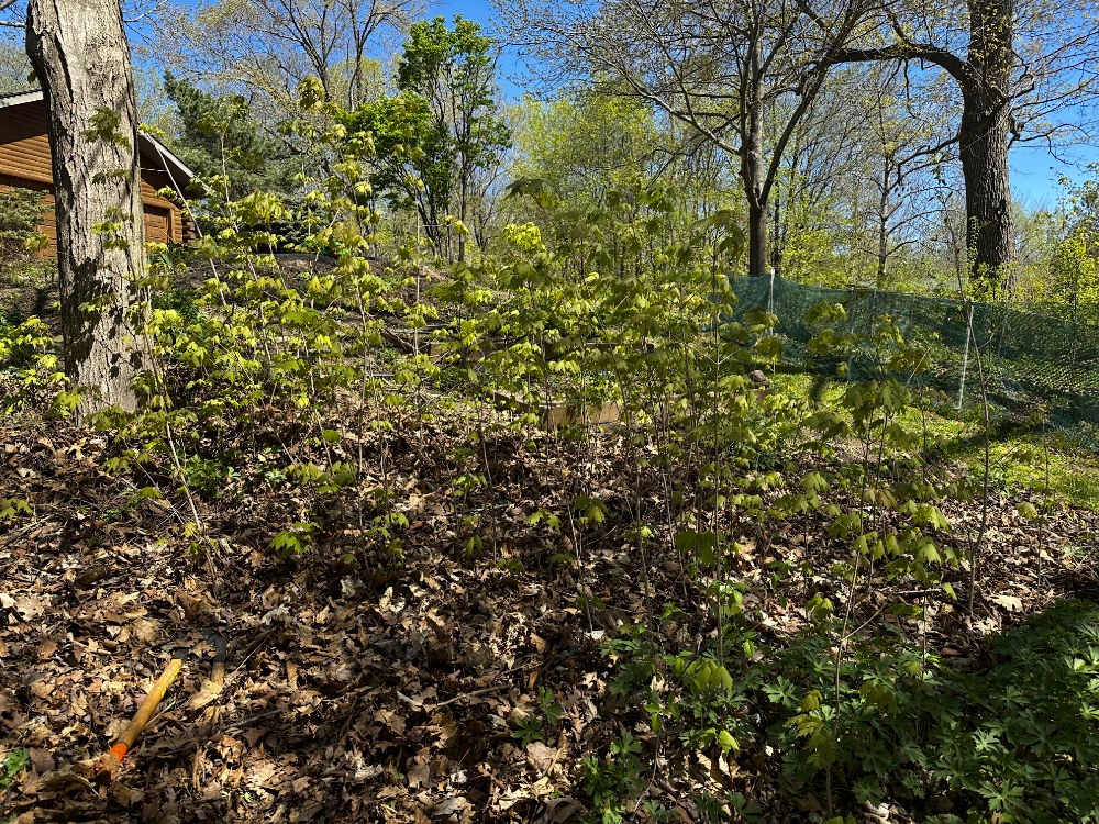 After enough years of witnessing the incredible number of new maple trees sprouting annually, we’ve developed a new confidence in taking lethal action against ones that show up where they are not wanted. Yesterday, I terminated a grove of new maple trees with extreme prejudice.