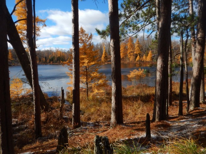 I’ve only spent a little time on this so far, but already I can sense the difference of studying pieces of an image that I captured. The location is a northern Minnesota forest on land owned by our friends, Mike and Barb Wilkus. We were hiking through the woods on a beautiful fall day and I stopped to snap a shot of the small lake surrounded by trees.
