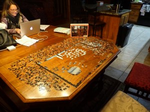 It has been a long time since I did a jigsaw puzzle at home. After visiting Judy’s and Mary’s houses over the holidays and seeing their puzzles in progress, I felt a renewed motivation to get out one of my own again. Luckily, I had a very special new puzzle in my queue.