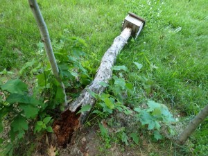 It’ll be a while before what’s left of that tree tips over and falls to the ground. Unfortunately, it’s beyond my reach to mount anything on top of it. The winged creatures are on their own to build a nest up there if they so choose.