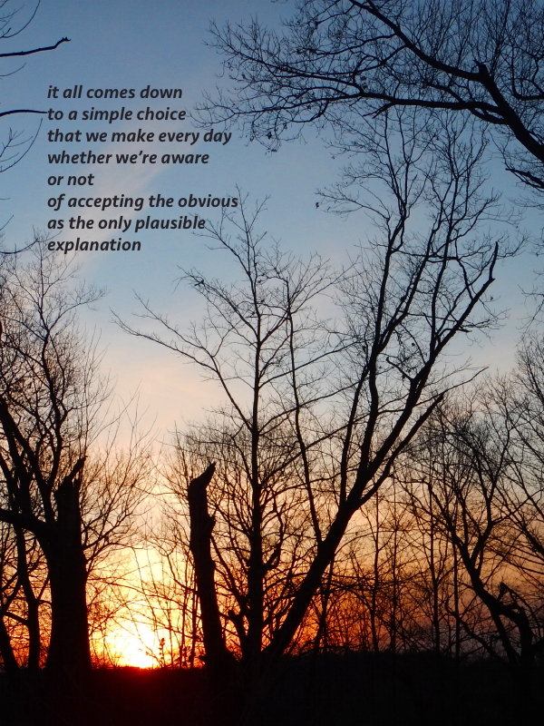 If you read yesterday’s Words on Images post about the simple choice that we make every day, how do you interpret the suggestion about accepting the obvious as the only plausible explanation?