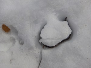 This leaves us with the adventures of watching snow melt. I am fascinated by the way anything of color absorbs the solar energy and melts a perfect pattern into the otherwise reflective snow.