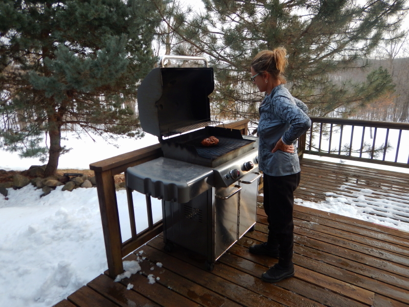 Not much happening here. The beginning of March is arriving with a dose of warm temperatures melting our snow. Cyndie took advantage of the thaw last night and prepared a pork roast on the grill for dinner.