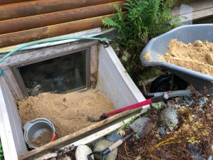Yesterday, we noticed he had removed his traps, as planned since there was no additional activity. That was my cue to dig out the well and replace the cover.