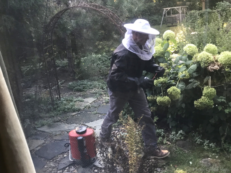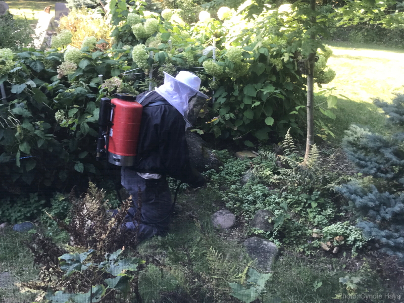 While he was setting things up for that last time, Cyndie warned him to be careful of the wasps showing up nearby. He spotted the ground nest a few feet away and offered to take care of it, at a discount, since he was already on site.