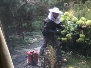 I needed more than mosquito netting to fend off wasps that were showing up around the door to the shop. The solution was more of the poisonous chemical variety when I finally located the nest being built in the outdoor light over the door.