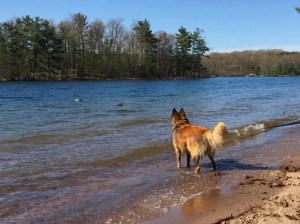 After chomping the white water multiple times, she alerted to the two ducks floating calmly past. I think they reminded her of chickens.