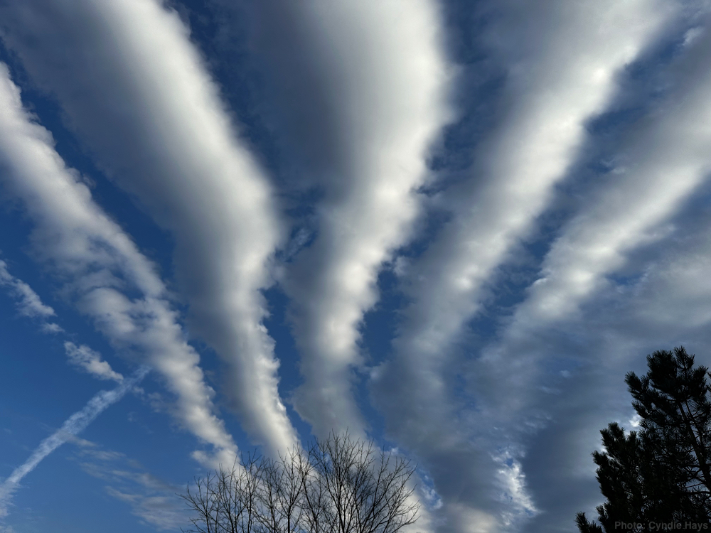 As the day wore on, the sky became filled with a remarkable depiction of the waves blowing the air, shaping the clouds in the upper atmosphere.