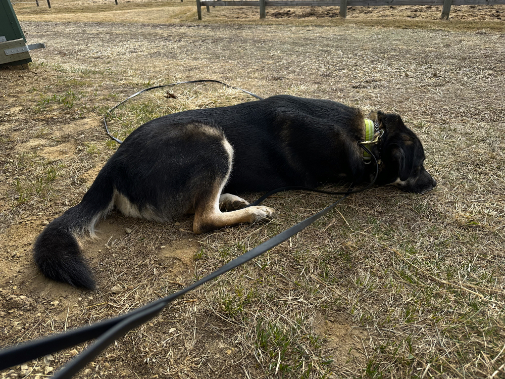Yesterday wasn’t very photogenic while I was walking with Asher. When we came out of the barn after feeding the horses and came around the corner of the hay shed, we found the neighbor’s cat crouched with its attention focused on something other than us behind the shed. Asher lurched and startled the cat, who then made a hasty sprint for cover.
