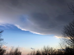 At the last turn onto our road, the sun was shining through broken clouds as the weather forecaster on the radio talked about the snow accumulation expected out of this system just to our north and the tornado watch issued for our county and all the others in three directions around us.