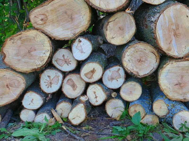 Upon cutting and stacking the logs, I discovered there were some fascinating patterns in the cross sections. It is hard to imagine what was creating such fantastic figures. They look almost angelic. I’m going to have a hard time choosing to just split this and burn it. The way I see it, there are a variety of potential art projects to be made out of these. Wouldn’t they look great sanded to a fine, smooth finish, and then oiled?