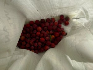 The few that I ate while collecting the best-looking specimens weren’t as sweet as what I remember from last year, but they weren’t sour or bitter either, so they should still make for good jam.