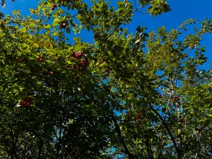 Well, more trees, that is. We do also have a rather tall apple tree that looks like it grew wild in the woods between the back yard and the barn. It dropped a lot of fruit last year. This year’s crop looks to be a bit more subdued.