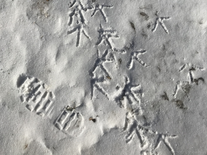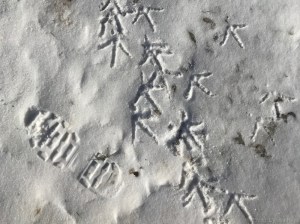 The pending challenge which we are very curious to have revealed, is whether the predicted next wave of snow will double what already fell Tuesday, and make our job of clearing paths and trails –and the back deck– even more challenging that it was already going to be.
