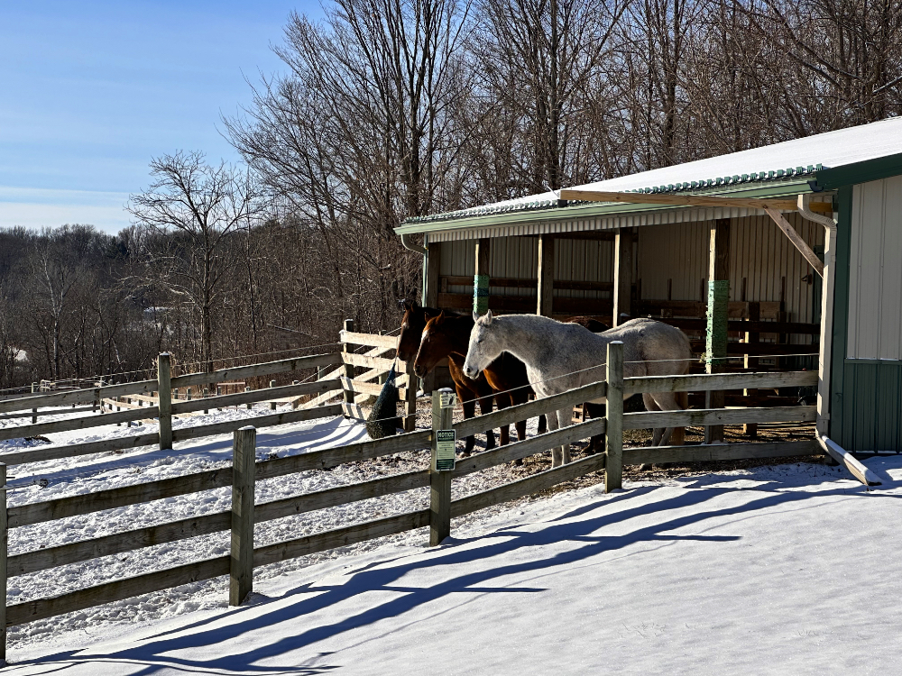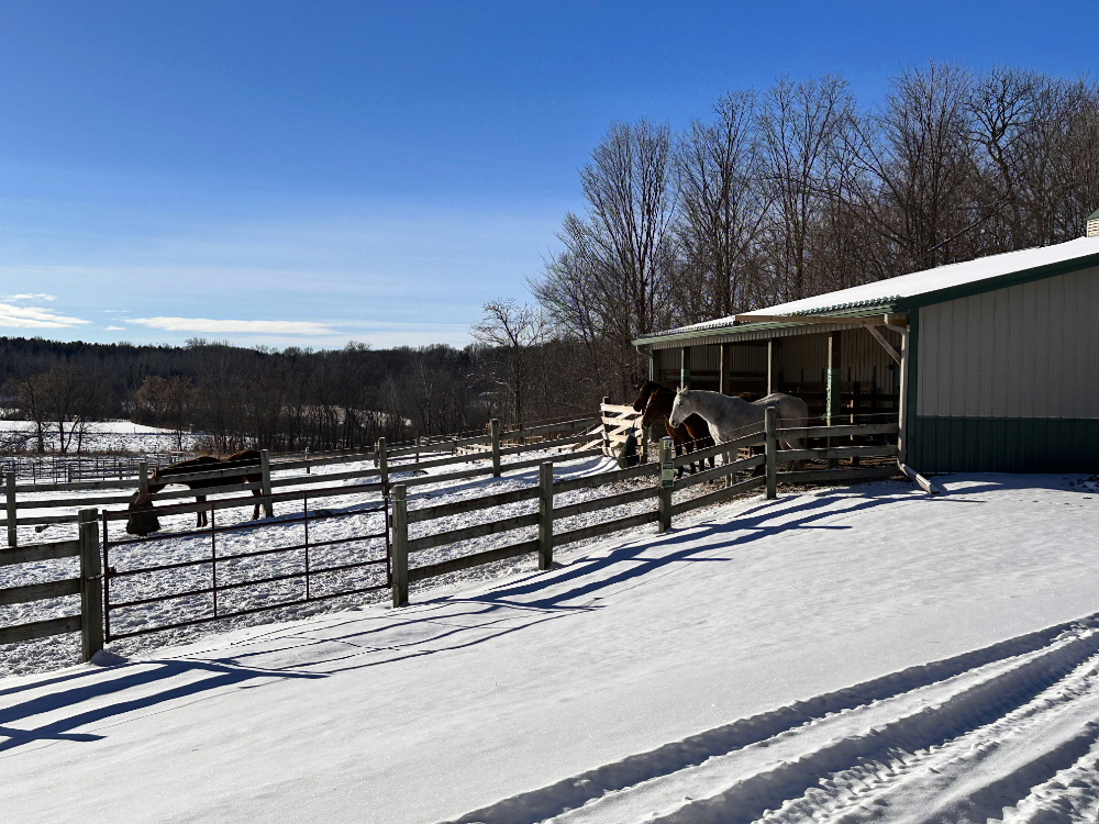The horses are coping well with the impact of real winter weather. It seems they remember how to do this better than I do.