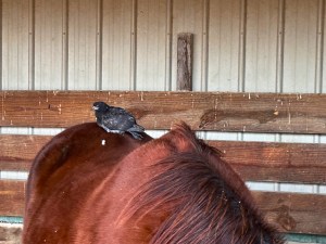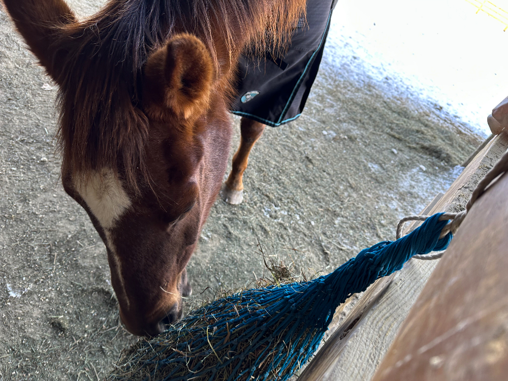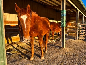 The chilly air frosted whiskers but otherwise didn’t appear to bother the horses at all this morning. Compared to those warm days with fog limiting visibility, these cold, crisp days allow the horses easy viewing, which is much more calming on their nerves.
