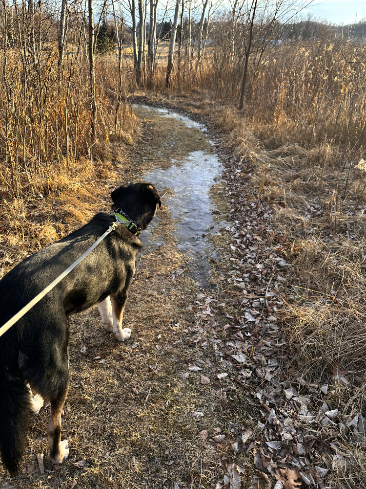 I’m blaming the darkness of night and the wealth of nocturnal critters available to tempt him. Last night, when I took him out, however, I used a leash. Fool me once…