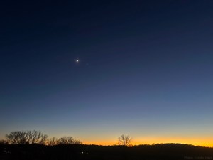 One other rewarding thing about cold weather in the winter is the clear skies that accompany it. When Cyndie pulled into the driveway last night, she stopped to capture the view.