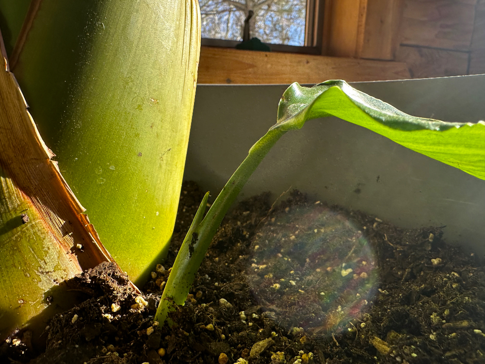 The previous three sprouts that have appeared since this gorgeous potted “tree” arrived at our home were so inspiring that I find myself watching and wondering where and when another pointy tip will emerge. I now have my answer.