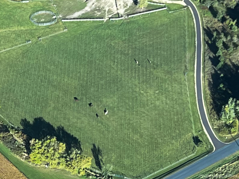 The four horses stand out pretty well in that last image. Cyndie, Delilah and I were a little above and to the right of the horses. To the right of us, the bottom portion of our brand spanking new driveway stands out rather nicely, too. Looks pretty good even from that altitude.
