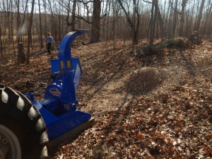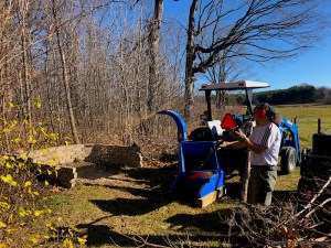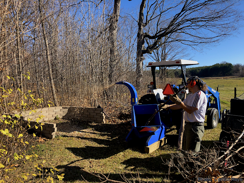 One of my very favorite property maintenance projects is converting unsightly piles of tree branches into valuable piles of woodchips, and on Monday, we did just that.