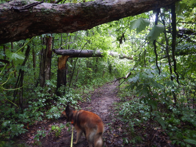 It’s becoming an obstacle course to navigate that trail through the woods. Cyndie was away all weekend, so I respected our agreement to avoid using the chain saw when I’m alone and left the three downed trees across the path for the time being.