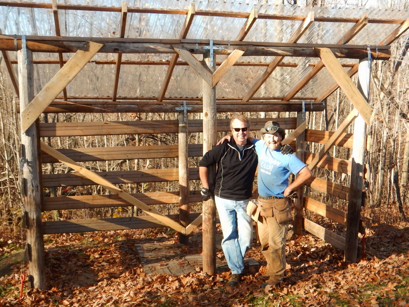 Today we have some high expectations for big accomplishments. Our friends, Barb and Mike are coming over to help us get the woodshed roof back up. Before we even get to that project, our horses have an appointment with the veterinarian. They will have their teeth checked and be given whatever shots are due in this routine scheduled visit. We plan to move them into their stalls in the barn when we go down to serve their morning feed. After horses, it’s all about the woodshed.